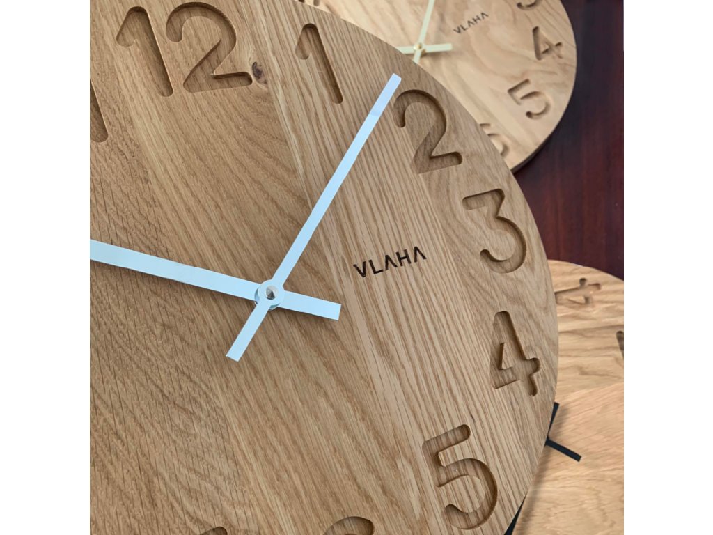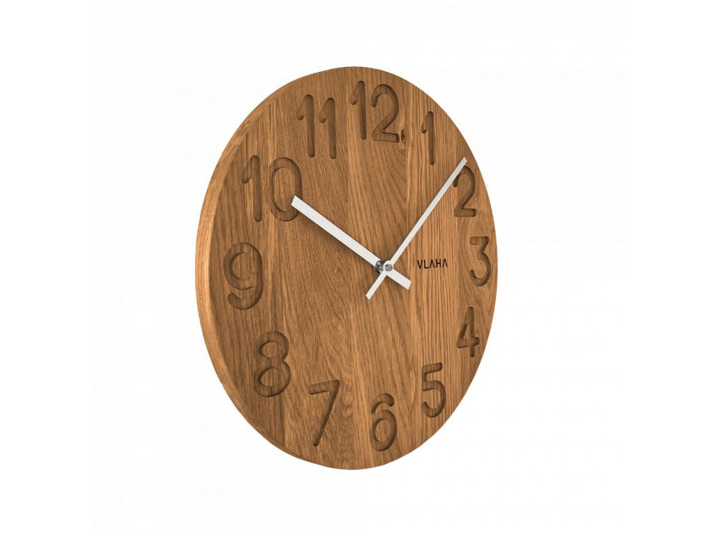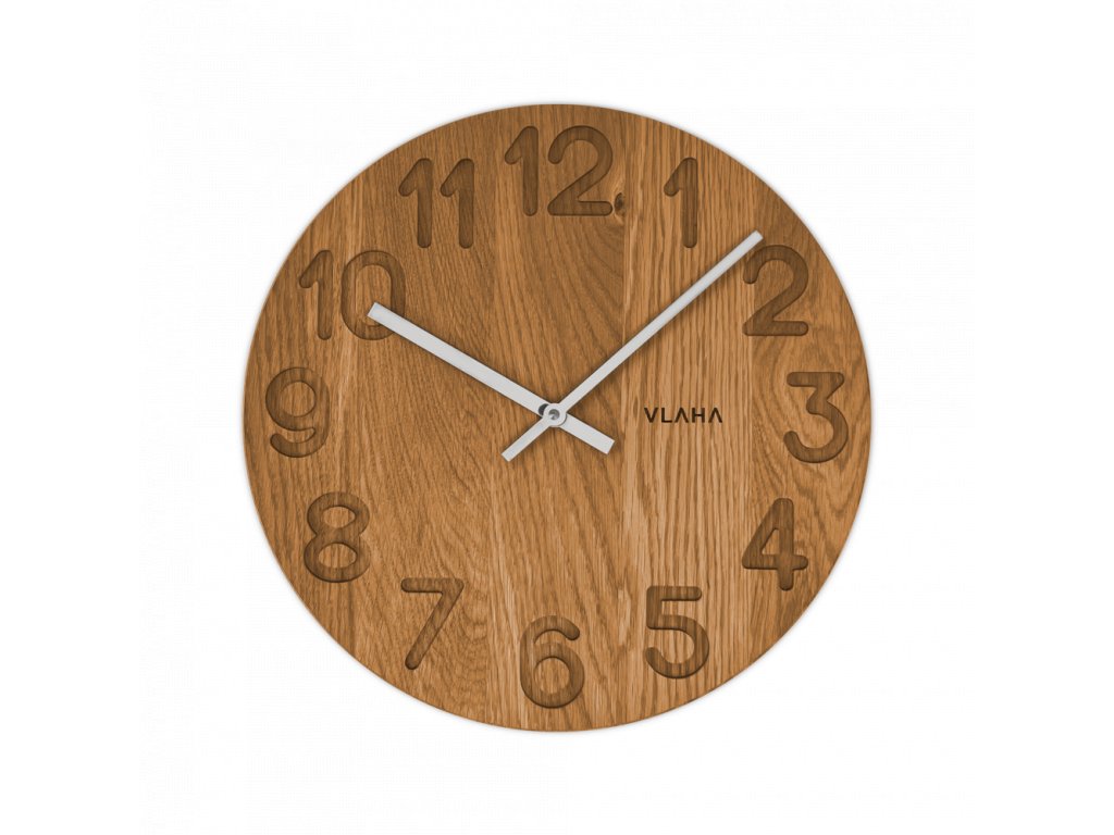 VLAHA Dřevěné hodiny OAK vyrobené v Čechách se stříbrnými ručkami ⌀34cm