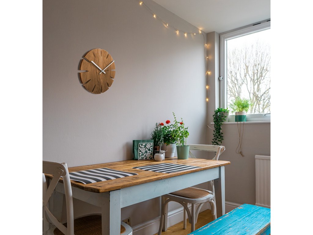 Vůně dubového dřeva a přírodních olejů se rozline ve Vašem bytě, jakmile na stěnu pověsíte nové dřevěné hodiny VLAHA.